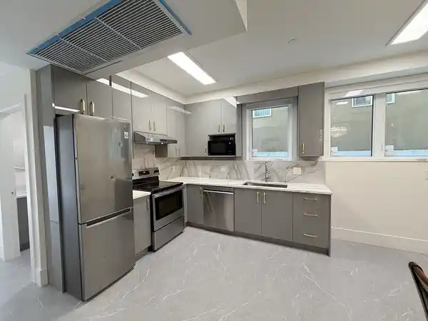 Gound-floor 2-bedroom, 1-bathroom suite located steps from Moberly Park and Walter Moberly Elementary. The home features an open-concept layout with a fully equipped kitchen, in-suite laundry, and air conditioning—a rare find in Vancouver rentals. Prime school catchment: Walter Moberly (K-7), John Oliver (8-12), and Sir Winston Churchill (French Immersion 8-12).