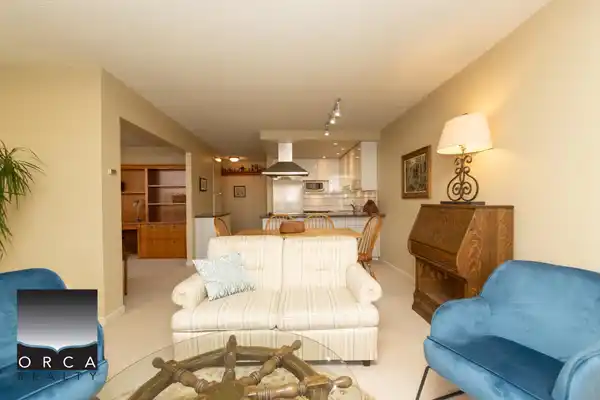 Embrace luxurious waterfront living with panoramic English Bay views in this stunning 1BR+Den/2BA home at Huntington West Tower, ideally located in Vancouver’s West End. This renovated residence offers a spacious, open-concept layout with floor-to-ceiling windows that frame breathtaking ocean and mountain views. The master bedroom offers direct access to oceanfront views and includes a spa-like ensuite, and luxurious finishes. The modern, gourmet kitchen features granite, top-of-the-line appliances, and sleek recessed lighting, perfect for both everyday cooking and elegant entertaining. An additional den space provides the flexibility for an additional bedroom, a home office, guest room, or study.