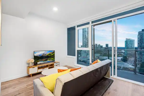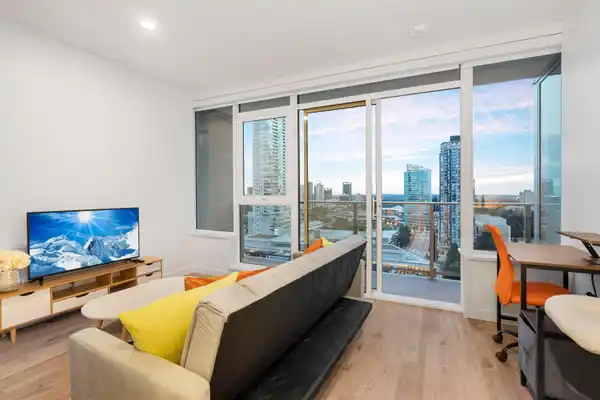 This bright south-facing unit showcases spectacular panoramic views and sun-filled living all day long. Designed for comfort and lifestyle, the home offers central heating & A/C and 24-hour concierge service. Indulge in resort-style amenities including a rooftop pool, theatre room, billiards and table tennis. Unbeatable location just steps to SkyTrain, Library, shopping mall, restaurants and banks, with T&T, Walmart and Best Buy nearby. The unit comes furnished as is, and 1 parking stall included! Call for your private appointment!