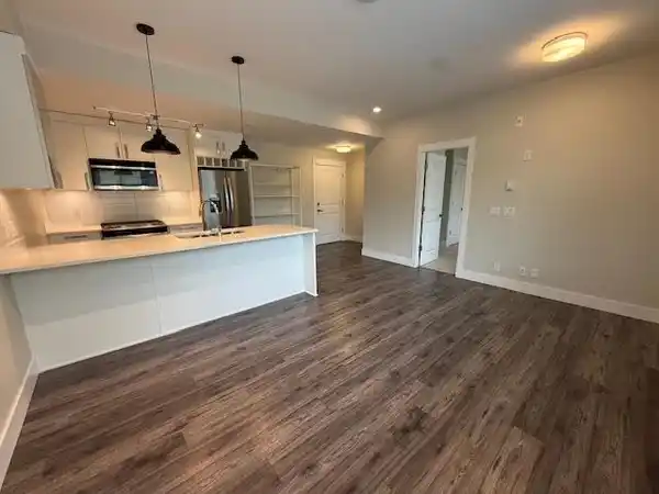 Lovely 1 bedroom/1 bathroom apartment across from west coast express. Featuring stainless steel appliances, including gas range, quartz countertops, 2" blinds throughout, full-size washer and dryer, large primary bedroom with cheater ensuite. Comes with one parking stall. Available Now! No smoking, 1 pet upon approval. 1 year lease and credit check required. $1700 per month plus Hydro. Please email Leslie, Axford Real Estate and Property Management.