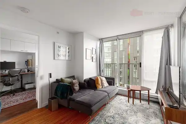 Experience the epitome of modern living in this spacious, unfurnished condo situated in Vancouver's vibrant Mount Pleasant neighborhood. With 796 square feet of meticulously designed space, this two-bedroom, two-bathroom residence offers a seamless blend of functionality and contemporary style, ideal for those seeking an urban lifestyle. Upon entering, the open layout immediately impresses, maximizing space and natural light. The west-facing orientation allows for breathtaking city and mountain views, best enjoyed from the 8th-floor balcony. Throughout the condo, stunning hardwood flooring adds a touch of sophistication to every room.