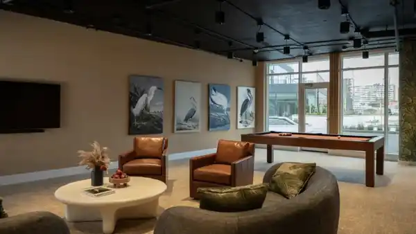 2023-built rental unit, south-facing 798 sq. ft. home featuring 2 bedrooms, 2 bathrooms, and a den. Fully furnished and includes 1 parking stall and 1 storage locker. Residents enjoy access to a 5,500 sq. ft. amenity centre with fitness facilities, mini golf, outdoor hot springs, ping pong room, and Japanese tea room. Prime location: 5-minute walk to Richmond Centre and Brighouse SkyTrain Station. Only 7 minutes by car to YVR Airport and the Outlet, and 25 minutes to Downtown Vancouver. Ideal for convenient, well-connected urban living.