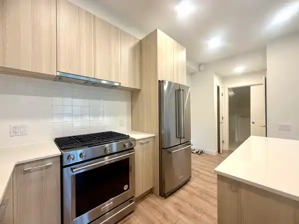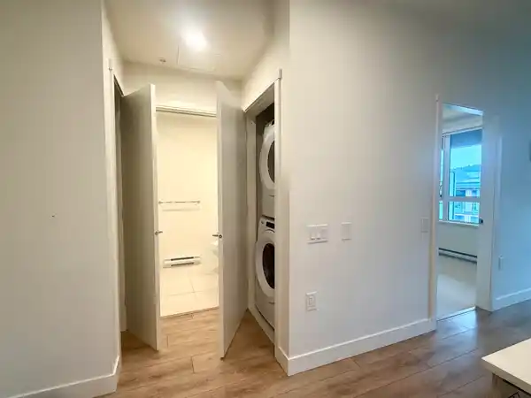 Welcome to The Oaks—a modern, almost-new apartment perfectly situated in the vibrant Coquitlam West neighbourhood, just steps from Burquitlam Plaza and convenient transit options. This bright and stylish 2-bedroom, 2-bathroom home offers 721 sq. ft. of thoughtfully designed living space with an open-concept layout, ideal for comfortable living and entertaining. Home Features: Spacious open-concept floor plan, Contemporary kitchen with quartz countertops, stainless steel appliances, gas stovetop, and large island, Laminate flooring throughout with cozy carpeting in both bedrooms, Primary bedroom with walk-in closet leading to a 3-piece ensuite, Private balcony overlooking the courtyard with beautiful mountain views, In-suite laundry.