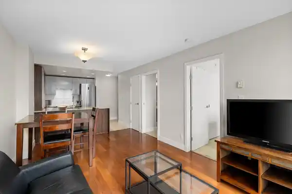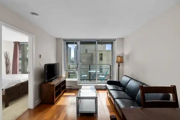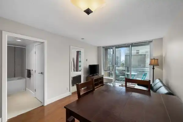 Spacious 1-bed+den/1-bath condo within the heart of Yaletown. Well managed concrete building. Open concept & functional layout features gourmet kitchen w/ granite counters, European style cabinetry, s/s appliances, spacious pantry & in-suite storage. New washer & dryer. Wide windows in living area allow natural light & create a warm & welcoming atmosphere. Spacious bedroom w/ queen bed & ample cabinet space. Den/office convenient for working from home. Enjoy views of the city from east-facing balcony. Amenities include on-site manager, gym, amenity room, rooftop garden w/ play area. Sorry. No Pets Allowed. Utilities not included. **Any parking stall measurement/size to be verified by prospective tenants**
