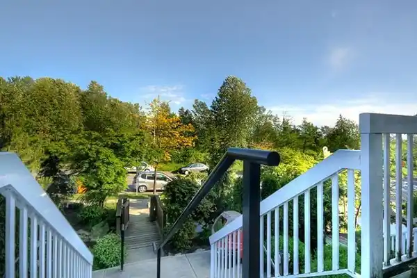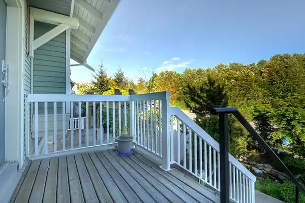 This is an updated, 1016sf, 3 levels, 2 bedrooms townhouse which faces Taylor Park to the southeast with lovely views of a long green belt. Over a rustic wooden bridge through mature gardens, you walk up a flight of stairs to the covered front porch. The main floor has an open and spacious living-dining room with a large bay window with custom cushion, a dining area next to the kitchen, a large coat closet, a 2 pcs powder room, and a huge storage closet underneath the staircase. The updated kitchen features 3 sides of new white cabinets, a pass-through window, updated appliances, a large under-mount sink, new stone countertops, and matt black kitchen fixtures. Up one floor are the 2 bedrooms with large bay windows (one is cushioned), the 4 pcs main bathroom and insuite laundry.